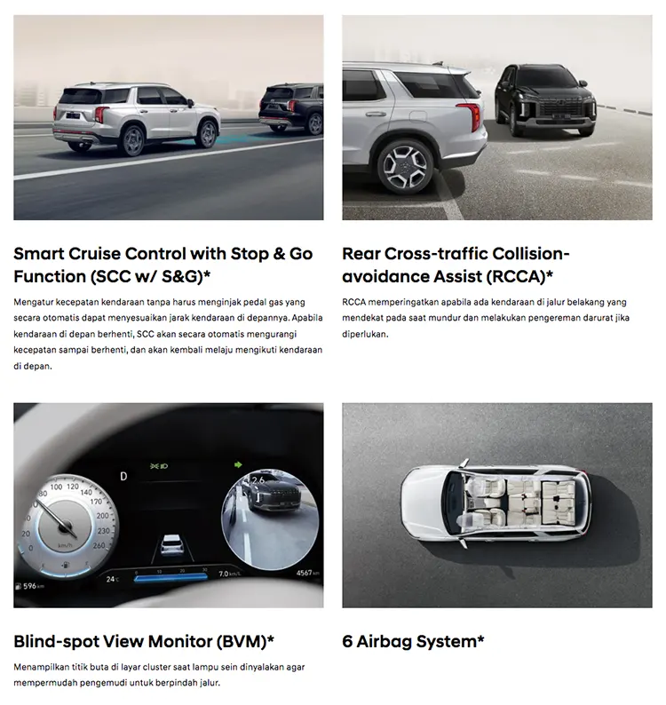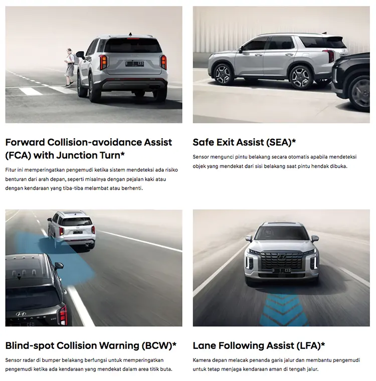 Fitur-fitur istimewa New PALISADE menjadikan perjalanan Anda sekeluarga lebih aman dan nyaman.
