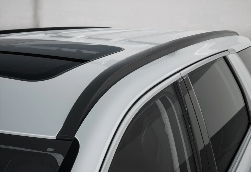Rel atap hitam yang baru dirancang menggabungkan fungsi dan gaya, meningkatkan keanggunan tangguh SUV ini.